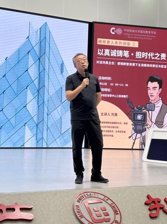“榜样育人”系列讲座第三讲开讲。北京日报微博微信编辑部主任、高级编辑刘昊以“用真诚织补‘碎片’”为题,为2024级汉语国际教育专业80余名本科生带来了一场精彩生动的讲座。黑丝a片