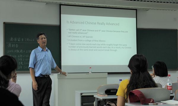 7月24日,冯教授的讲座题目是Qualification We Need,详细阐述了汉语教师应有的素质和精神,并向同学们提出了七条建议,如“Master education psychology”, “Do research”, “Solid knowledge”,“Computer skills”等。在谈到职业生涯时提醒同学们,“使命感”是每一个汉语教师必不可少的精神