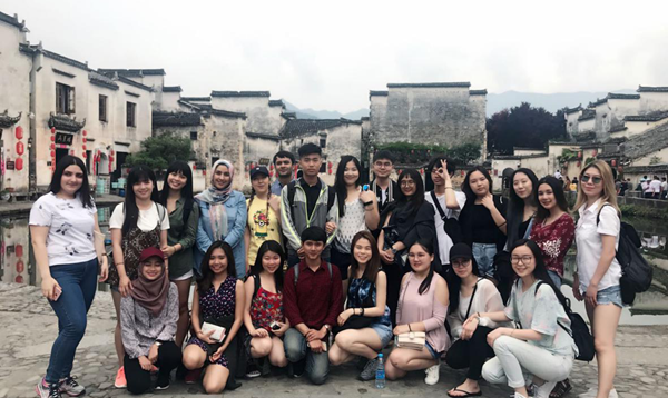 组织本科与硕士孔子学院奖学金生奔赴安徽省黄山市,进行了一场“感知中国”的文化体验之旅。来自美国、韩国、泰国、缅甸、伊朗、马来西亚、亚美尼亚、印度尼西亚、哈萨克斯坦、塔吉克斯坦国家的24名国际学生参与了此次活动。在四天时间里游览了徽州古城、黄山、西递宏村、棠樾牌坊群、鲍家花园以及屯溪老街,并参观了安徽老字号胡开文墨厂,学生们亲身体验制作中国文房四宝——徽墨,感受中国民俗之美,通过体验世界文化遗产、动手实践等形式深入了解中国文化,感受中华文化魅力。