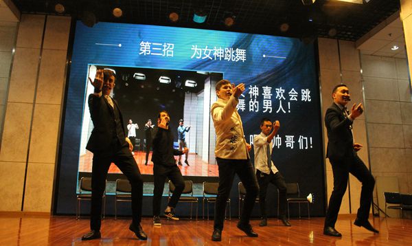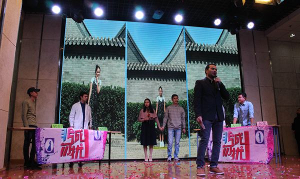 紧接着,我们随着本科二年级1班的同学来到了《非诚勿扰》大型相亲节目的现场,留学生们以几位性格不同的男女嘉宾形象和跌宕起伏的情节,为我们上演了生活中一幕幕牵引人心的故事。