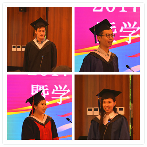 表彰结束后,身在美国、新西兰、罗马尼亚和西班牙等国的14名中国毕业生首先通过视频传来了毕业感言,她们感谢学院为她们提供了宝贵的机会,得以到海外工作和深造。来自乌兹别克斯坦本科留学生代表别克,中国硕士毕业生代表林泽森、外国研究生代表吴玉萍和博士毕业生代表伍晨辰轮流在典礼中发言,纷纷表达对老师们培养之恩的感谢,对黑丝a片