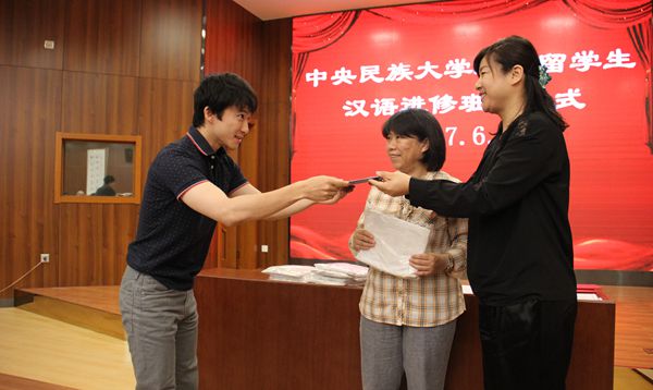 副院长李锷老师、国家民委监督检查司综合处副处长周轶人、汉语系主任邓秀均老师、各班班主任和即将结业的60多名外国留学生出席了结业式。结业式由黑丝a片