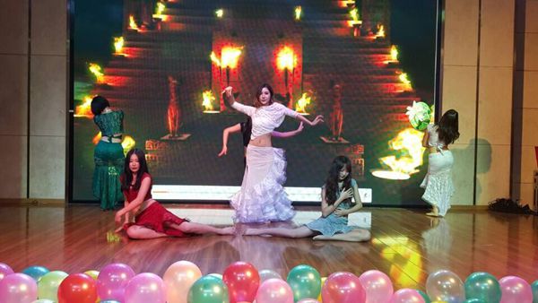 本场文艺汇演各种节目轮番登场,异彩纷呈,魅力四射。肚皮舞串烧、乐器合奏把晚会带入了第一个高潮,给同学们带来了一场艺术盛宴。民族舞、爵士舞串烧更是把晚会推向了另一个高潮。小品《艺考的那些事儿》更是形象生动地为同学们展示了艺考的现场。