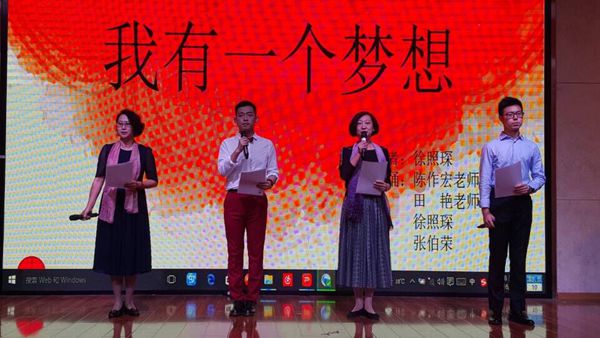 学生张伯荣、徐照琛声情并茂的师生朗诵《我有一个梦想》,那慷慨激昂的语调点燃了同学们内心的情感,深深地被感动了。
