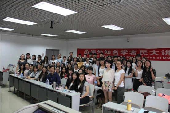 黄南松教授毕业于中国人民大学和斯洛文尼亚卢布尔雅那大学,获得学士、硕士及博士学位,先后在中国人民大学、斯洛文尼亚、奥地利等地工作。2002年到美国,任教于哈佛大学和南加州大学。曾两次获得中国人民大学优秀科研成果奖、两次获得哈佛大学优秀教学奖,他是对外汉语教学界的专家。此次讲座主题为美国外语教学学会口语水平测试,讲座主要围绕美国外语教学学会口语水平测试的结构、主要分级和意义展开,目的是让学生了解OPI,在讲座的最后部分,黄教授还播放了一段口语水平测试的面试录音,请同学们当考官来判断面试者的中文口语等级,讲座现场气氛活跃,同学们积极发言,黄教授耐心答疑,呈现出一片融洽的场面。
