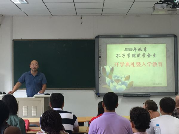 的基本情况。之后,他在会上通过视频及图片展示了孔子生平,以及孔子学院的发展历程和取得的成就。他讲到孔子开创了儒家学派,其博大精深的儒家思想深刻影响了中国两千多年,成为中华传统文化的代表和精髓。以“孔子”命名的孔子学院是中国改革开放的产物,是为了加强中国与世界各国的了解、友谊和合作,促进世界多元文化的共同繁荣与发展应运而生的。孔子学院2004年创办以来,已经成为各国人民学习汉语、了解中国、促进中外文化交流的重要平台。孔子学院开办到哪里,就把沟通、了解、和谐、友爱的种子播撒到哪里,落地生根、开花结果,把汉语和中华文化传播到世界各国,又把不同国家的语言文化引入中华大地,通过促进语言和文化交流, 把中国梦与世界梦紧紧地联系在一起,书写着中外人文交流史上最为光荣、绚丽的篇章。通过李副院长的介绍,孔子学院奖学金生加深了对孔子学院在传播中国文化中的意义、作用的了解。最后,李锷副院长重点地提示了在校学习生活期间应该注意的一些事项,希望同学们能注意人身和财产安全,提高防范意识,遇到解决不了的问题,多找老师商量。他同时希望同学们积极与其他国家留学生和中国各民族学生交朋友,从而学到更多的文化。随后,陈力老师讲述了关于奖学金生年度评审、签证、保险以及近期工作安排和注意事项做了详细地说明。陈老师还非常体贴地介绍了学院各办公室的老师们及其主要负责事项,以便同学们能更好更快地熟悉中国北京的这个“新家”。