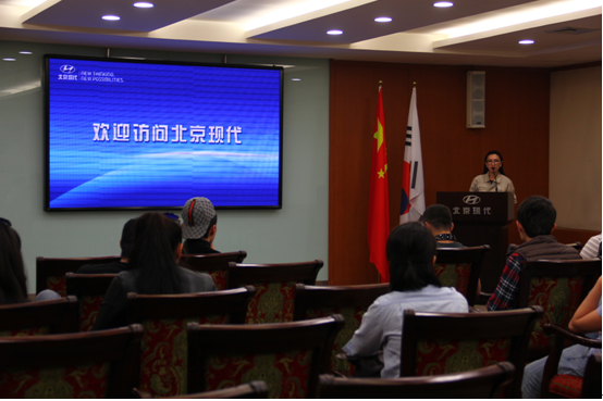 师生。 她手心引导大家进入多媒体会议室为大家播放了公司宣传片,并对北京现代汽车公司的历史进行了详细的介绍。