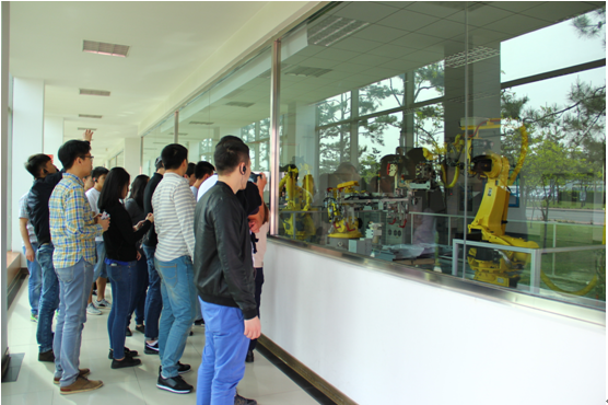 留学生参观生产流水线