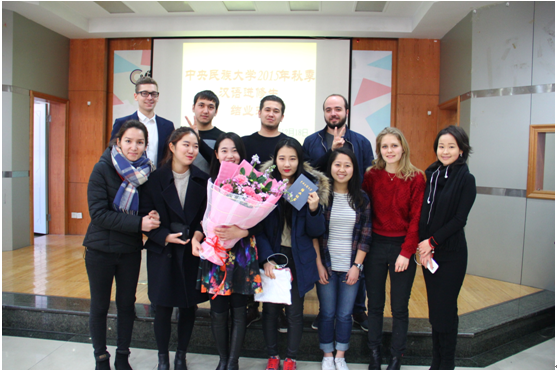 副院长李锷老师进行了总结发言,并为各班获得“优秀学生”称号的学生颁发了荣誉证书。随后,各班班主任老师和邓秀均老师一起为留学生颁发结业证书,赠送纪念礼物。最后,大家合影留念。