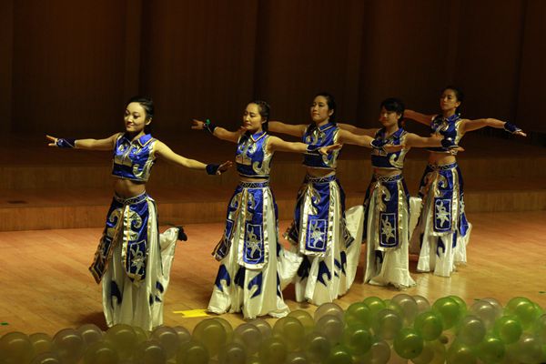 民族舞《欢庆》,其中的蒙古舞和傣族舞是同学们对暑期中华文化课程的又一总结演出,维吾尔族舞和藏族舞又体现了黑丝a片