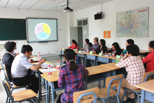 情况介绍,并与学院班子成员、各系主任及有关科室主任进行了交流。陪同调研的有校长办公室张俊豪主任和国际交流处处长何克勇教授。