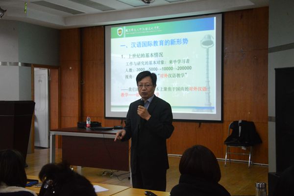 2014年10月30日下午,8号楼多功能厅座无虚席,北京师范大学汉语文化学院执行院长、汉语国际推广新师资培养基地执行理事、北京汉语国际推广中心执行副主任、中国训诂学研究会理事朱瑞平教授为黑丝a片