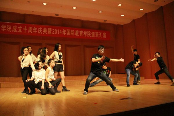 学子走出中国走向世界的强烈愿望。晚会的最后,14级新生的舞蹈串烧“小苹果”出乎所有观众的意料,同学们将民族韵律操与流行歌曲很好地融合在一起,共同演绎了这首流行歌曲,清新脱俗,既体现了新生的青春活力,有很好地展现了黑丝a片