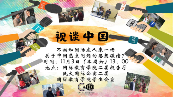 学生会为在校国际学生推出的重要文化体验类活动,该活动围绕当前中国社会热点问题以及中国传统文化等相关内容,让国际学生通过视频采访的方式去亲身感知当代中国人和外国友人对这些问题的看法以及理解。本次活动共设定了20个热门话题,如共享单车的使用、当今网络暴力问题、中国环境问题、留守儿童/留守老人问题、中国的网红文化等,国际学生可根据自己的兴趣爱好确定自己的选题,并和中国学生完成视频拍摄和制作。参赛选手的最终分数将由拍摄视频的内容分以及比赛当天讲说其他组视频的分数共同组成,最后根据分数的高低,评选出一等奖1名,二等奖2名,三等奖3名和优秀奖若干名。