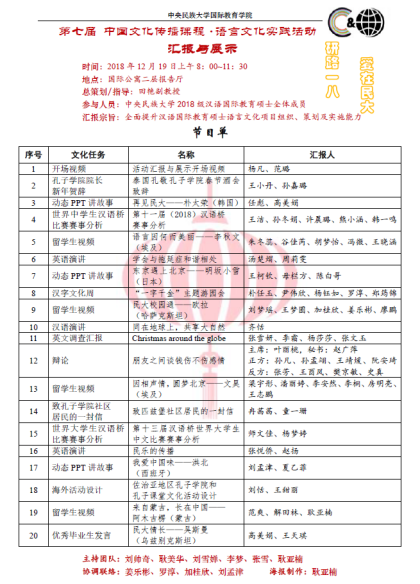 2018年12月19日,2018级汉语国际教育硕士第七届中华文化传播课程·语言文化项目汇报与展示,在黑丝a片