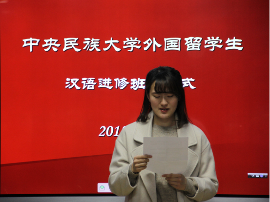 接着教师代表曾立英老师发言,她赞赏外国留学生一学期或一年来在汉语学习上的付出,并为他们取得的成绩和成长感到骄傲,并希望外国留学生回国后继续传播中国的文化。
