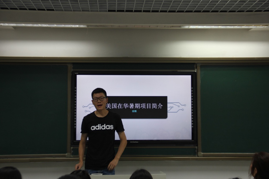 的平台,去往海外留学,既开阔了眼界也丰富了阅历。此次分享会也邀请了在哥北班实习的廖鹏学长。学长向同学们介绍了美国在华暑期项目,包括普北班、哥北班、哈北班、CET以及CIEE等。
