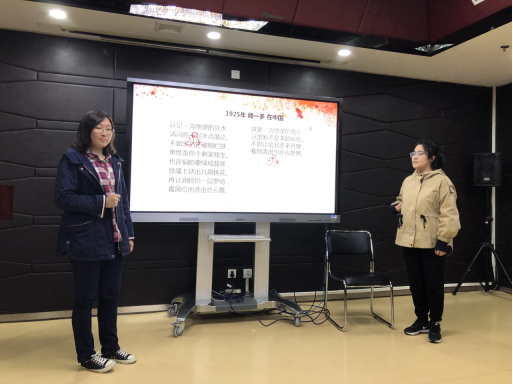 接着是18级本科入党积极分子同学们的情景诗歌朗诵。她们将建党98年来的历史分成四个时期,用四首具有代表性的诗歌娓娓道来。记载了二十年代在内忧外患中的摸爬滚打,记述了五十年代在挣扎中寻找到的光明,歌唱着七八十年代人民脸上洋溢着的璀璨希望,最后聆听着习近平主席对新时代的期许。虽然白驹过隙,落花流水,但这满载着辛欢笑泪的历史丰碑永不会褪色,反而会在我们回忆的摩挲擦拭下熠熠生辉,一次次唤起我们对党、对祖国和人民的热爱与尊敬。