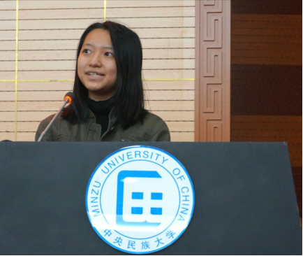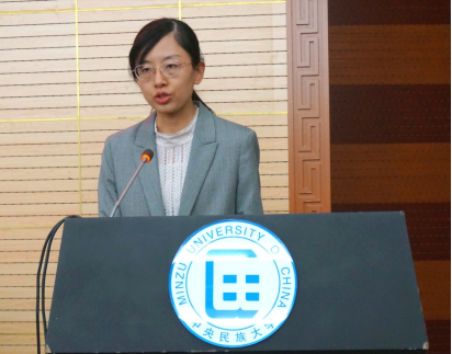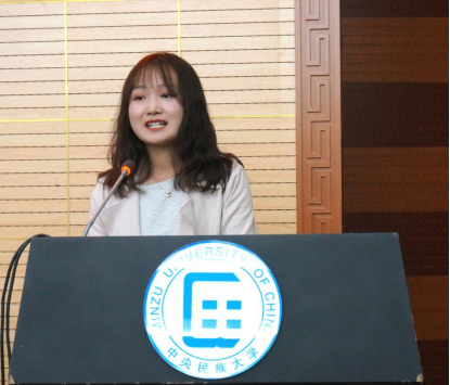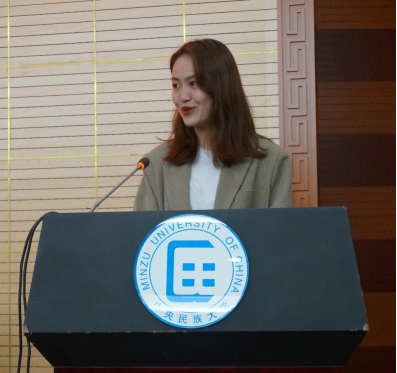 大会第三项,2020级硕士研究生代表牛琛淞同学分享了她初来民大的喜悦与激动,学院朝气蓬勃、充满生机、多元和谐的环境和独特的培养模式,都激励着她不断地去提升自己的专业素养、国际化视野,明确自身向全世界传播中华文化的使命。