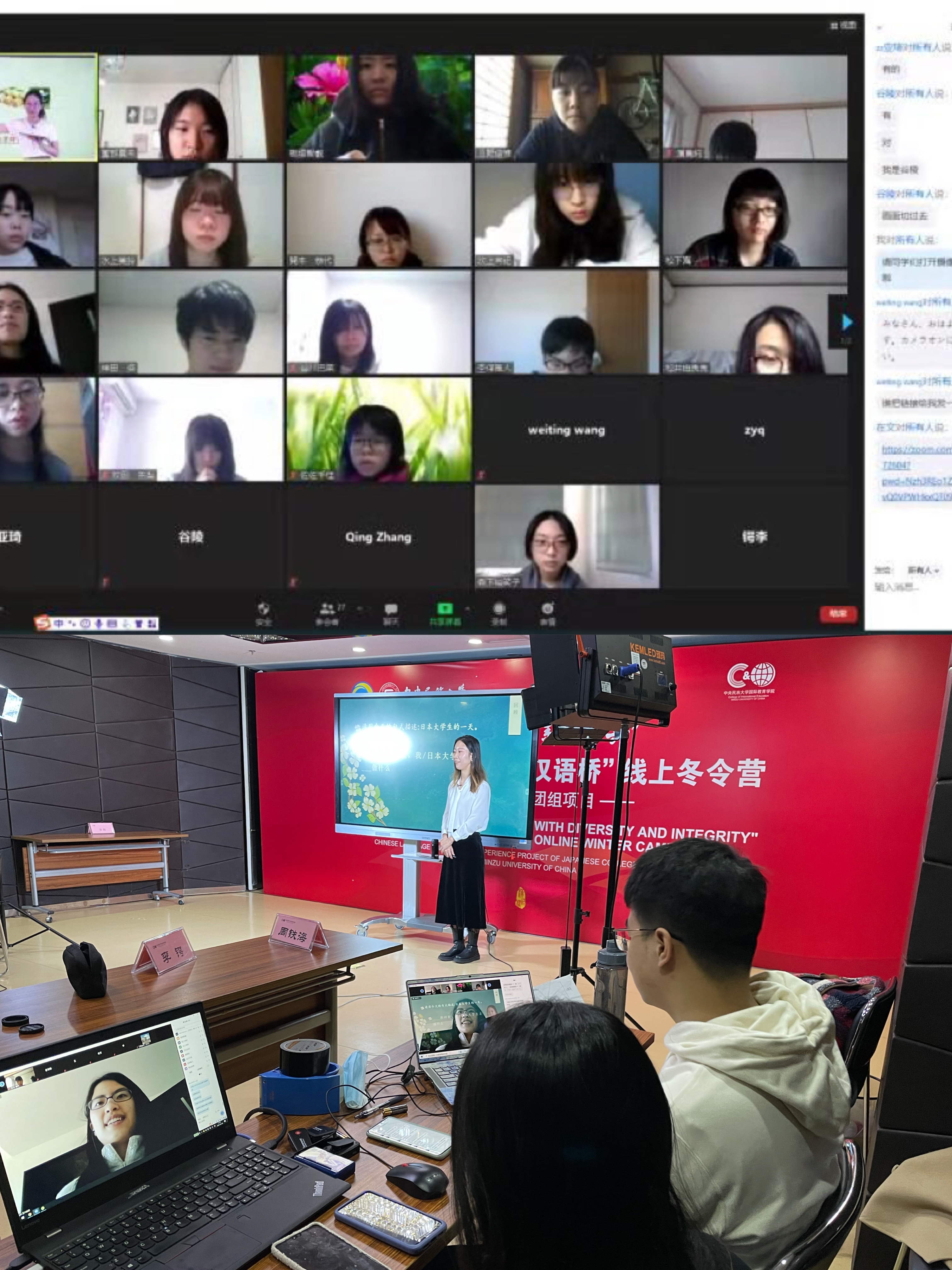 在这个特殊的时期,以一种全新的方式为学生们带来很多新的文化知识。她说:“平时我们课上没有时间讲这些中国文化。我觉得这种课程特别好,日本大学生也都非常喜欢这次的课程内容。我还要特别感谢我们的讲课老师们,尤其是对我们初级班听力口语不太好的学生,老师们不厌其烦的耐心讲解,保证让大家都能够得到锻炼,真的非常棒!让我也重拾初心,得益匪浅。千叶大学每年学习中文的学生特别多,大概有800到900人左右。但每年去中国留学的学生的人数特别少,所以我也希望通过本次线上的这种交流活动,能让更多的日本学生喜欢汉语,喜欢中国,并为将来的中日友好播下种子。希望明年我们能去黑丝a片