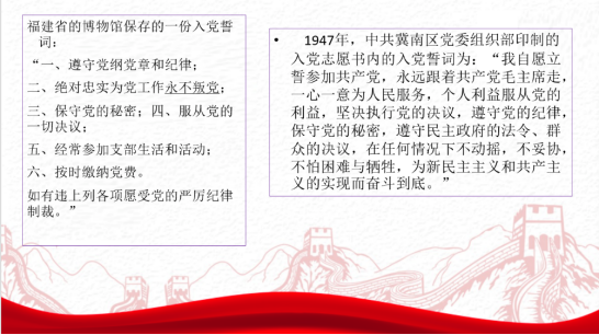 中国共产党的入党誓词,见证了中国共产党自红军时期以来走过的风风雨雨。各个时期的入党誓词都蕴含着时代的印记,反映了时代的特征。现在让我们来看一看入党誓词背后的故事!