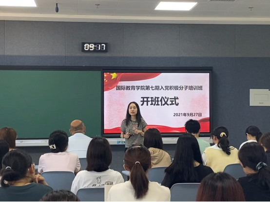 于2021年9月27日在日新楼405教室举办了第七期入党积极分子培训班开班仪式。共有55人参加本期培训,包括1名博士研究生、28名硕士研究生和26名本科生。其中,1名博士研究生和4名2020级硕士研究生使用腾讯会议,线上参与了本次开班仪式。黑丝a片