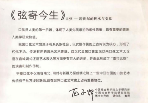 中科院范子烨教授对宁夏口弦的寄语