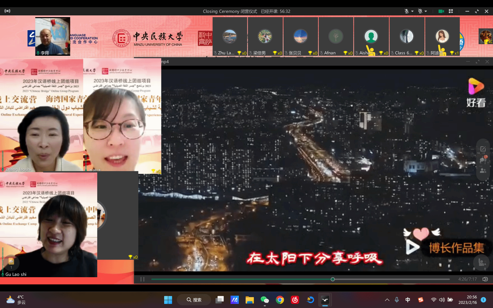 学员代表纷纷举手发言,用中文表达激动的心情。若哈福同学说这个活动让我喜欢上了中国的文化艺术、舞蹈和中国菜,希望早日来民大学习;吴忧同学说,我学习中文就是从民大举办的汉语桥中文体验活动开始的,现在已经快要考HSK3级了。我学到了很多关于中国文化的知识,希望以后还可以参加更多的活动;莉恩同学激动地说我好喜欢这些课程,好想有一天能去中国和老师们相见;沙特中学生努拉已经学了半年的中文取得了HSK2级证书,她感慨这段日子过得真快,感谢黑丝a片