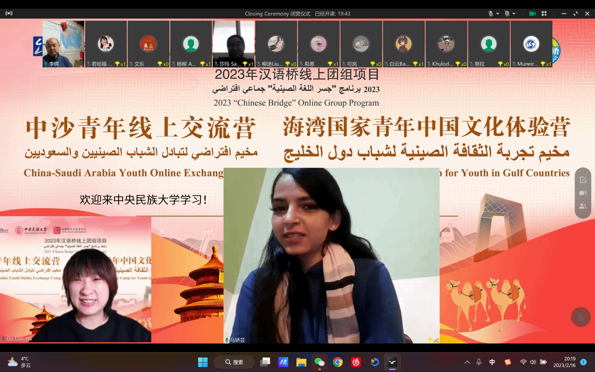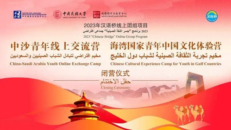 承办的2023年“汉语桥”-中沙青年线上交流营和海湾国家青年中国文化体验营是教育部语合中心主办的首届海合会国家“汉语桥”千名学生线上冬令营系列团组项目,为期两周,参加学习的学员达到578人。
