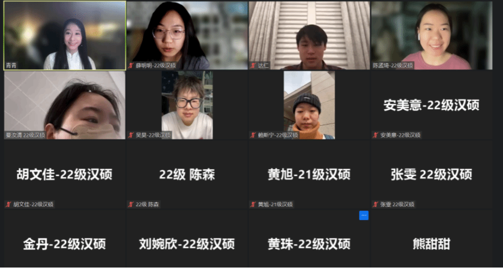 成功举办了美国留学及工作线上答疑分享会。会议邀请2012级毕业生青青分享,主题为“去美国当中文老师,你需要知道的几件事”。学院教学办公室主任孙宓琪及部分2022级、2021级研究生参加了分享会。