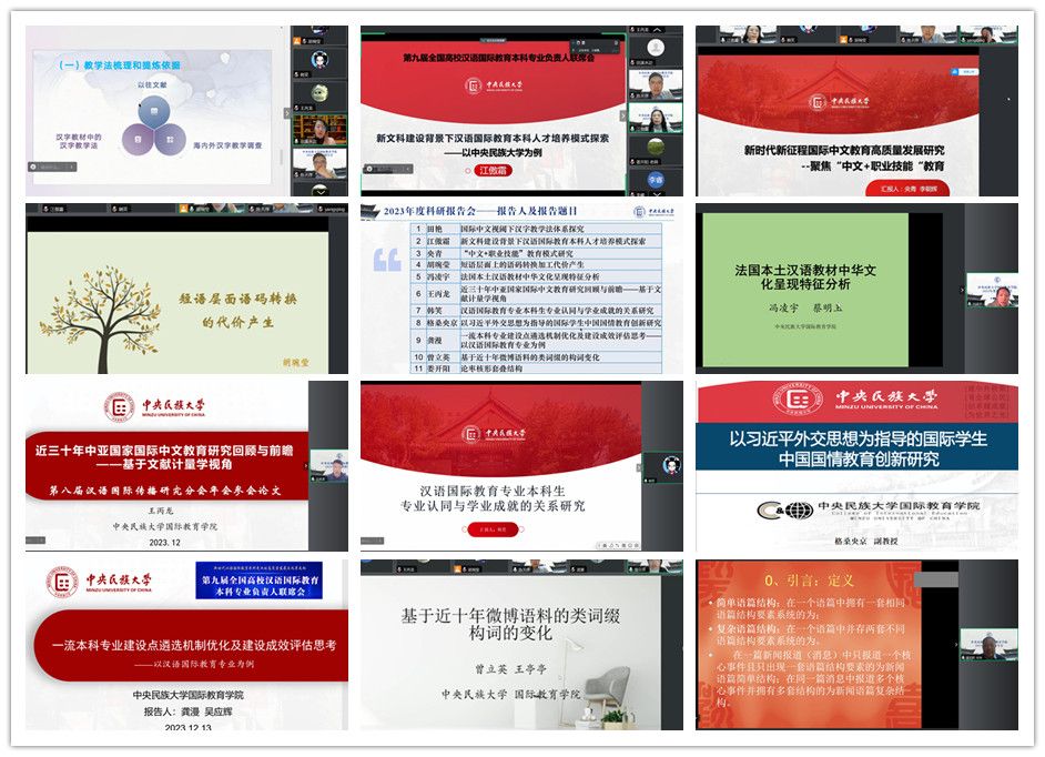 2023年共有11位老师接受学院资助,参加国内外学术论坛,与专家学者分享民大国教院的科研成果。在科研报告会上,11位老师先后报告了自己的研究成果,包括:国际中文教育的最新发展趋势和挑战,国际中文教学中的具体问题和解决方案,以及“中文+职业”等热门研究问题。陈院长对老师们的报告一一点评,并给出建设性意见。