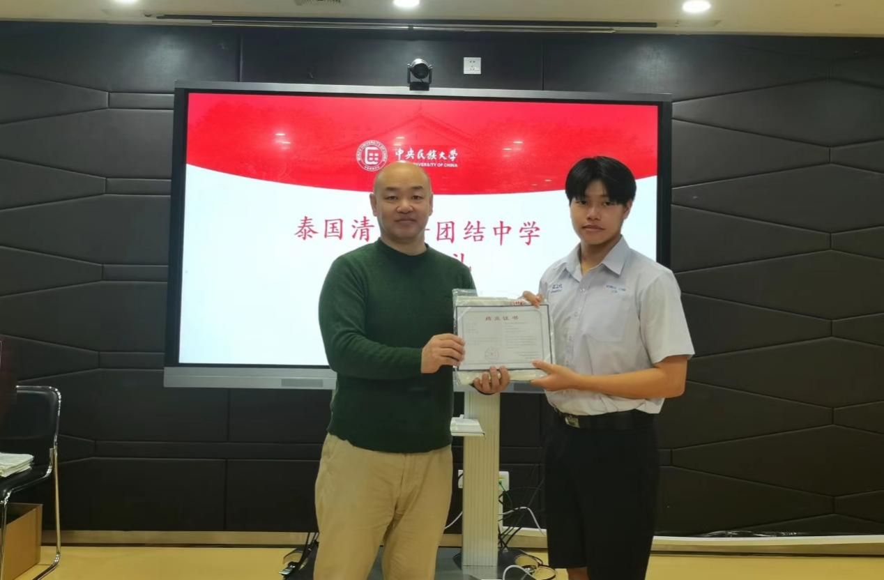 泰国清莱府团结中学的师生们特地准备了礼物,赠予学院的老师和工作人员,以表达他们的感激之情,彰显了两校之间深厚情谊。带队的韩老师深情地表示,相信此次研学项目只是一个美好的开始,未来中泰两国之间将有更多交流与合作的机会。期望未来两校师生能够继续携手并进,共同书写中泰教育交流的辉煌篇章。