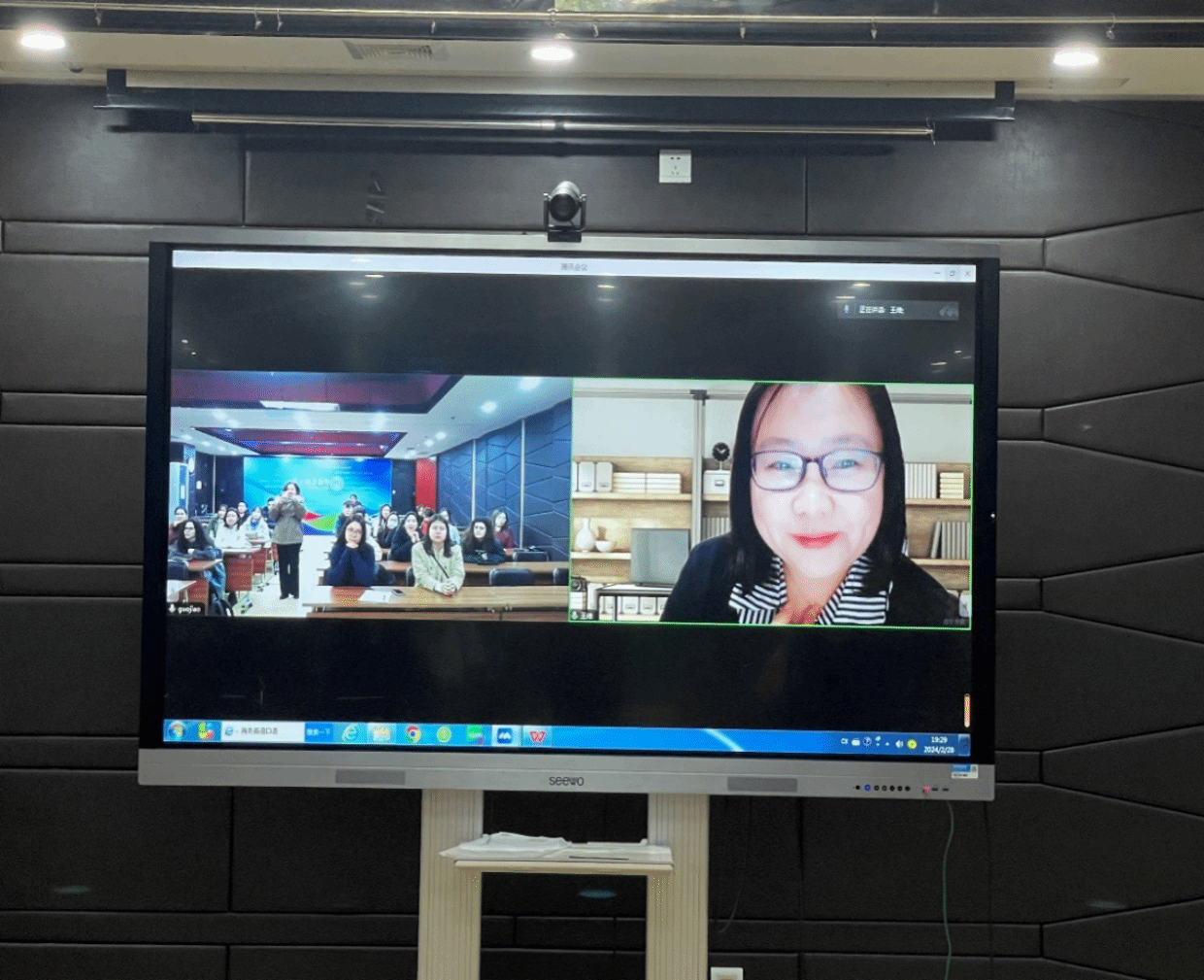 汉语进修与项目部主任王维线上向同学们表示热烈欢迎,同学们在学习和教学上有任何问题可以向她本人和班主任老师反映,预祝大家学习进步!