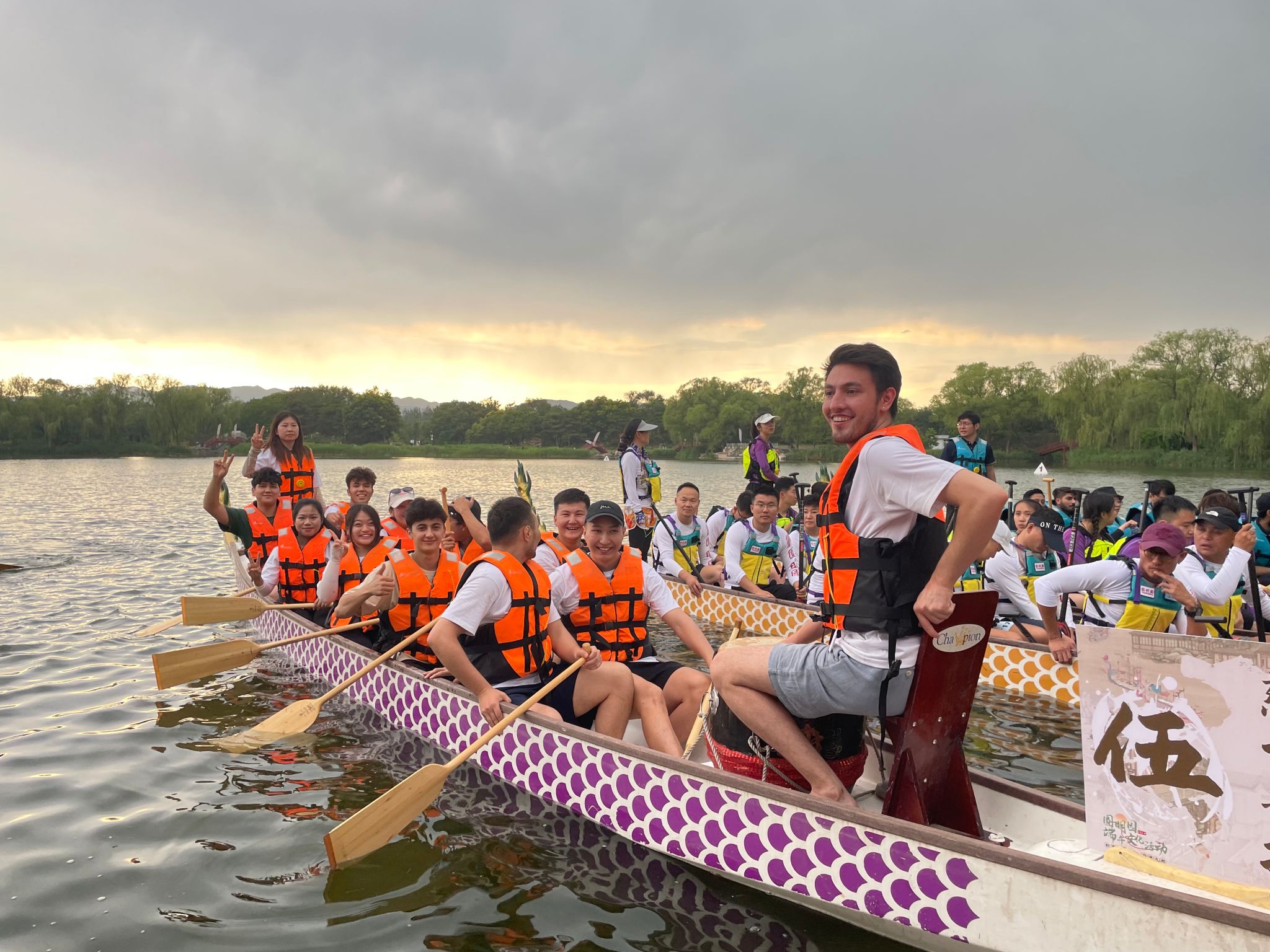 国际学生龙舟队以总成绩第三、留学生团队第一的优异成绩荣获竞渡展演亚军。