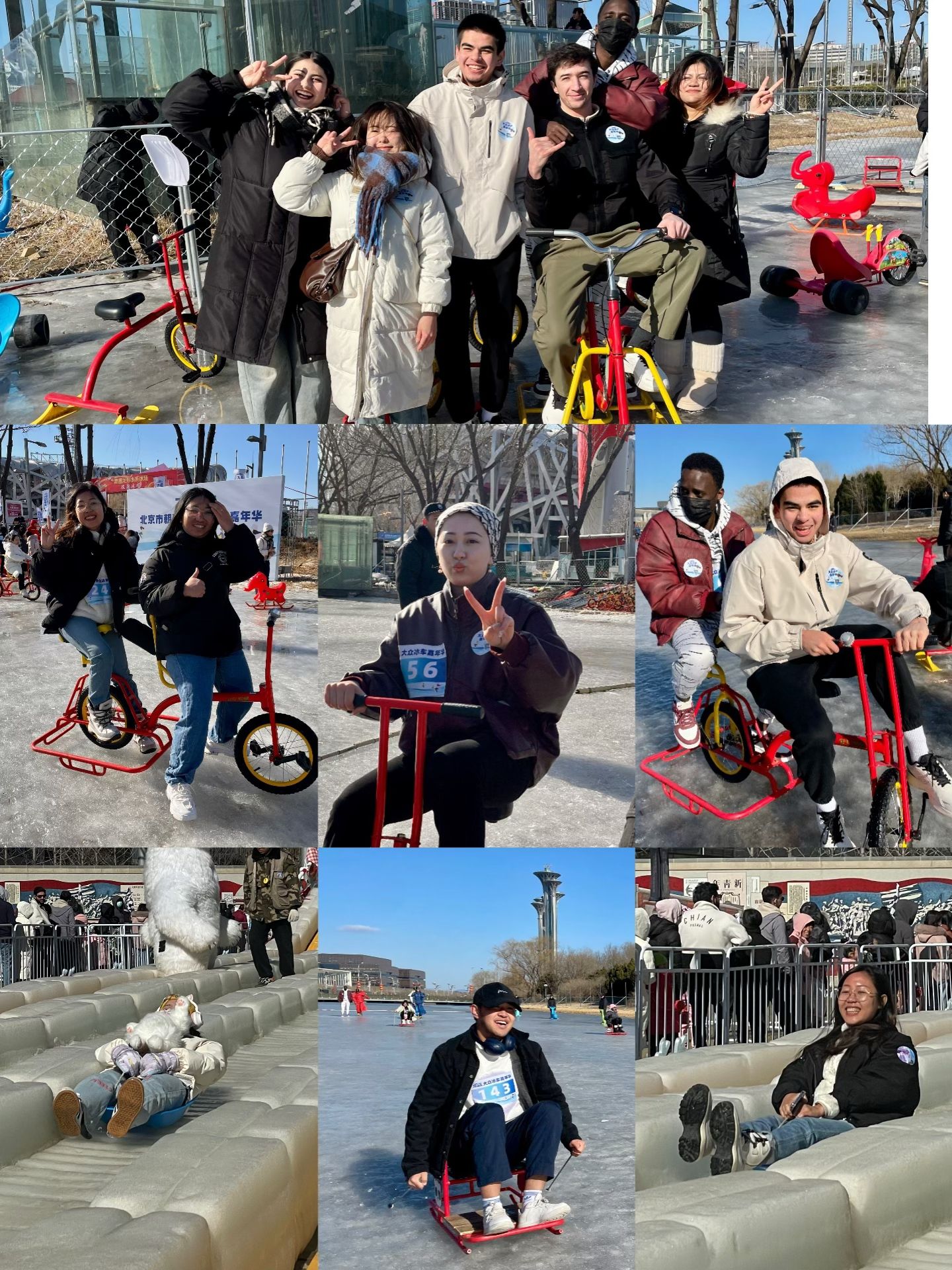 活动当天,同学们很早就来到活动场地,脸上洋溢着兴奋与期待。很多留学生是第一次尝试滑冰车和冰上自行车。活动主办方专门为留学生们准备了冰车竞速比赛,并设置了小奖品,活动中的每一个环节都让同学们感到新奇和有趣。留学生纷纷表示:感谢学校寒假期间提供这样宝贵的机会,让我们不仅学会了新技能,更重要的是,感受到了中国人民的热情和友好,以及中国人民对冰雪文化的热爱。