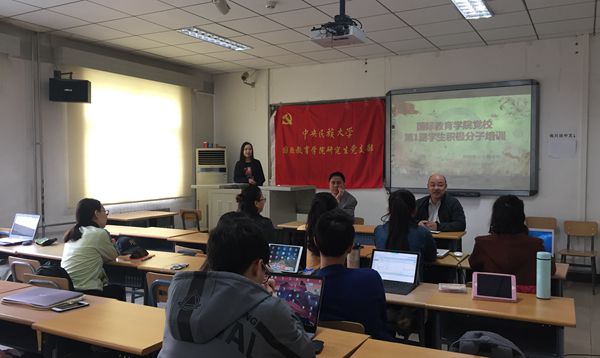 党总支书记周铁海同志做了《做一个什么样的人》主题报告。周书记以自己在民大求学、工作的经历,用大量的事例教导学员们做一个有信念、有规矩、有品行、有担当的人,着重讲述了理想与信念对青年大学生成长的重要意义;积极鼓励同学们加入中国共产党,为中华民族的伟大复兴贡献青春和力量。