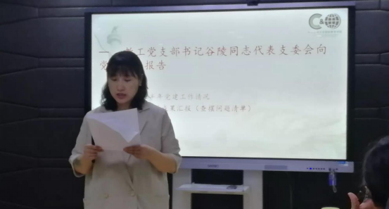 首先,教工党支部书记谷陵代表支部报告黑丝a片