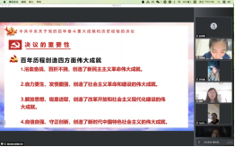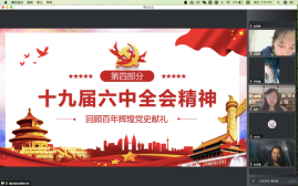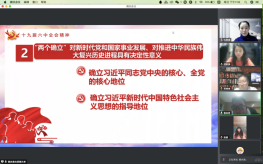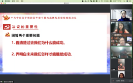 本科生党支部在线上开展了第五次“党员讲党课”系列学习活动。第五讲的主题为“献礼建党100周年——十九届六中全会”。党课由支部书记白照星同志主持,由支部党员赵佳雪、蔡尚君同志主讲,黑丝a片