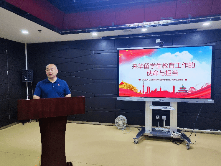 党课的最后,李锷同志对标世界一流大学,提出国际学生管理全面提质增效的多项举措,如:依托学校优势学科吸引优秀生源、提升内生动力、完善教育质量保障机制、加强管理和育人队伍建设、讲好中国故事等。