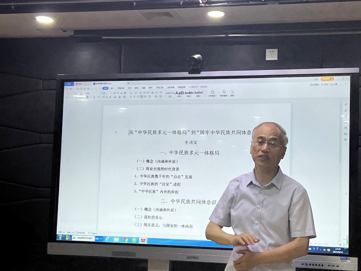本次宣讲活动邀请了学校第二届“杰出育人奖”获奖教师历史文化学院的李鸿宾教授。李鸿宾教授以“从中华民族多元一体格局到铸牢中华民族共同体意识”为题,给我们讲解了中华民族多元一体格局和铸牢中华民族共同体意识这两个概念的内涵和外延;中华民族多元一体格局理论出现的时代背景,铸牢中华民族共同体意识强化的重心等问题。李老师认为铸牢中华民族共同体意识继承了中华民族多元一体格局理论,但又在此基础上进行了升华。