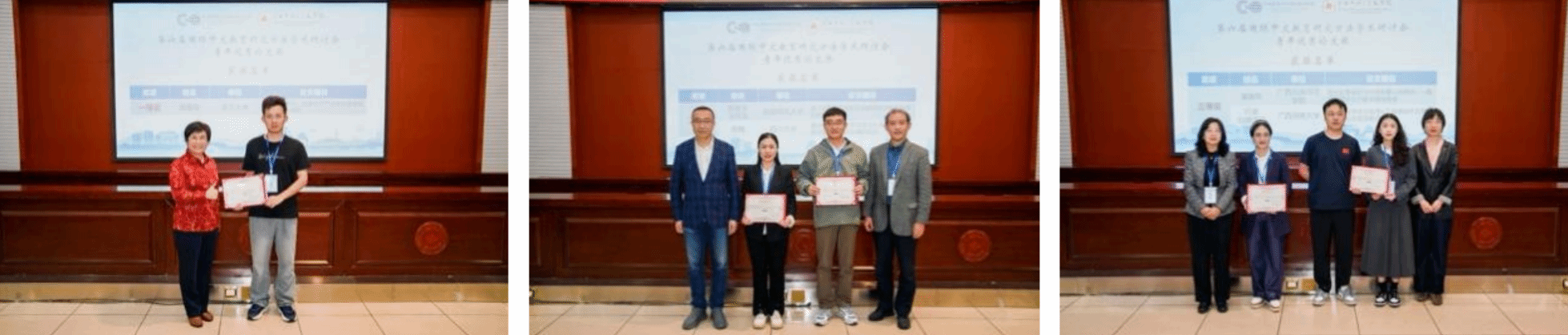 院长陈天序主持。首先,在场专家为青年优秀论文获奖者颁奖。本次会议共收到50余篇来自全国学者的论文全文投稿,最终评选出一等奖1名、二等奖2名、三等奖2名。