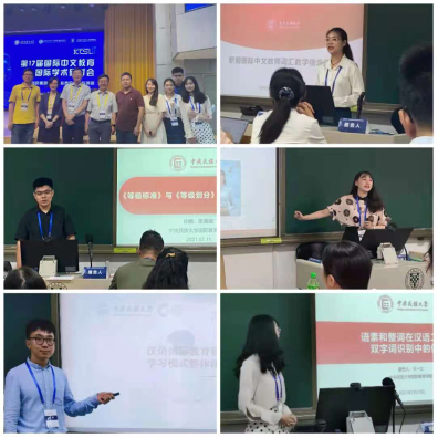 为例”;张海威副教授受邀主持了“教学法”组的分组报告。在“国别中文传播与教学”分组报告中,博士研究生贺莉娜、龚漫分别介绍了韩国与意大利中文教学资源的发展情况,博士研究生雷歌介绍了塞尔维亚中文教育的发展与制约因素及对策。在“教材与国别汉语传播研究”分组报告中,博士研究生李晓露、刘帅奇分别就北欧五国中文教育发展与印度尼西亚的中文教学资源建设做了学术报告。在“二语习得”分组报告中,硕士研究生王一土汇报了“语素和整词在汉语二语者双字词识别中的作用研究”。在“汉语国际教育的发展研究”分组报告中,硕士研究生王一凡和张亚琦汇报了“职前国际中文教师词汇教学信念研究”。在“测试与标准研究”分组报告中,博士研究生肖媛汇报了“基于证据观的医学汉语水平考试(MCT)效度研究”,硕士研究生孙鹏汇报了“《等级标准》与《等级划分》词汇收录差异研究”。在“教师研究”分组报告中,硕士研究生任彪汇报了“汉语国际教育硕士合作学习模式整体评估探究——以M大学为例”;在“教学法”分组报告中,硕士研究生徐小童汇报了“汉语微课交互性分析与思考”,本科生张博宇的“基于产出导向法的线上汉语教学迁移研究:以非目的语环境下泰国中级水平学习者为例”亦入选此分组报告。