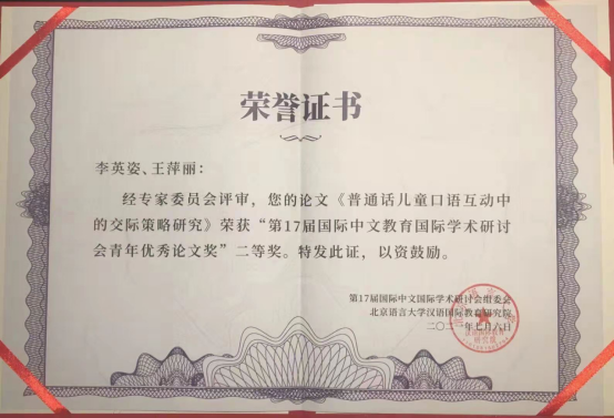 王萍丽老师参与的“普通话儿童口语互动中的交际策略研究”获青年优秀论文奖二等奖。