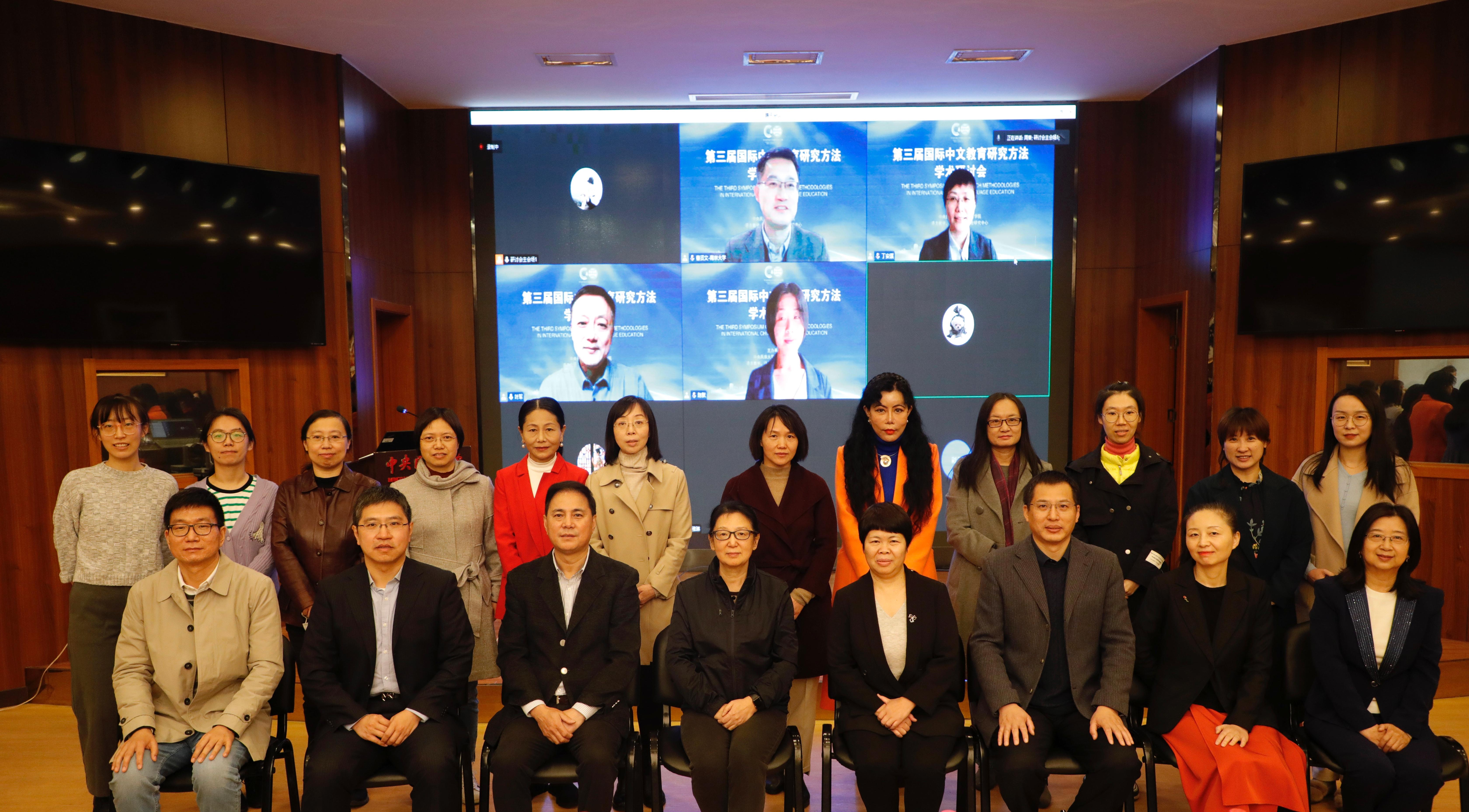 在海淀校区知行堂及云端同步举办了第三届国际中文教育研究方法学术研讨会。来自国内多所高校的专家学者与500多位参会师生线上线下共聚一堂,分享国际中文教育研究方法及最新成果。开幕式由黑丝a片