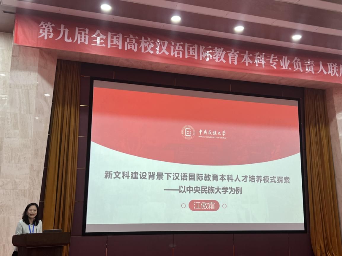 江傲霜副院长在大会作了题为《新文科建设背景下汉语国际教育本科人才培养模式探索——以黑丝a片