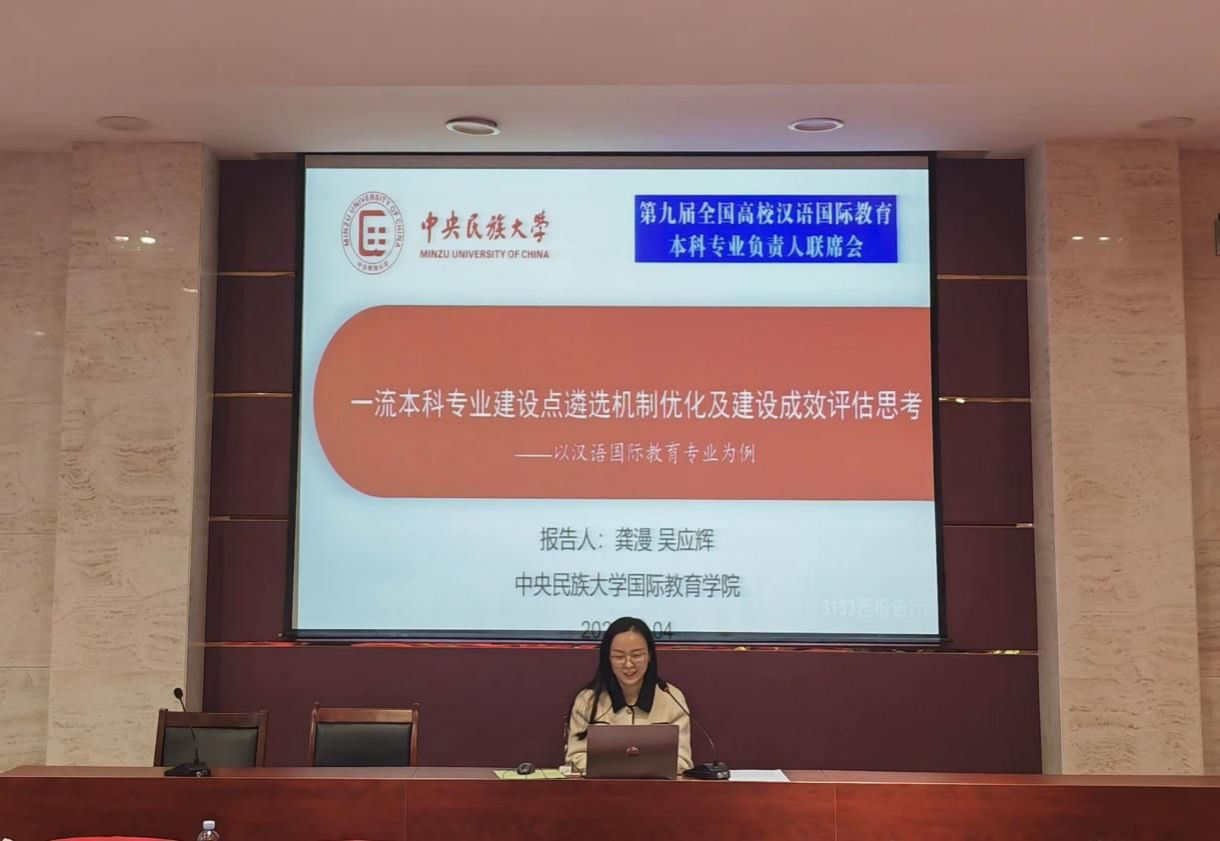 龚漫老师在分会场分享了《一流本科专业建设点遴选机制优化及建设成效评估思考——以汉语国际教育专业为例》。报告基于“双万计划”政策背景,介绍了一流本科专业建设点的遴选方式、遴选中存在的问题以及三条优化路径,最后对其建设成效评估进行了思考。