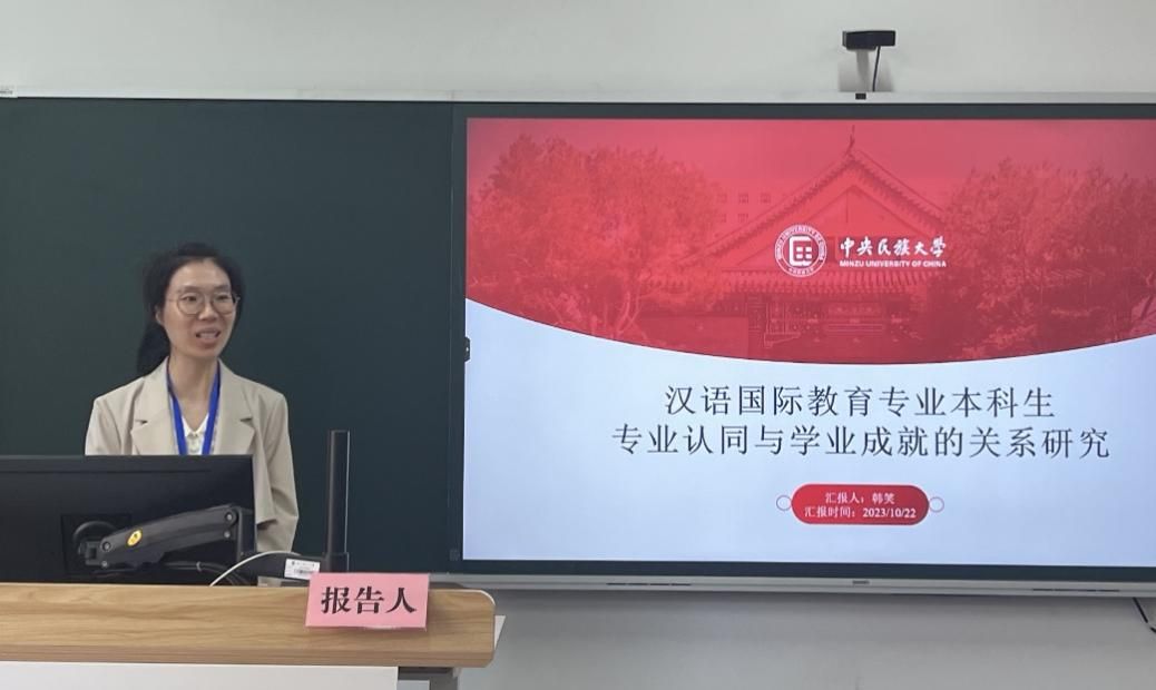 韩笑老师报告了《汉语国际教育专业本科生专业认同与学业成就的关系研究》,并在“专家释讲”“对话辨析”等多个论学环节积极向释学导师请教,围绕语言国际形象的建构、国际中文教育研究中的“关键概念”等问题同与会专家、青年学者展开深入讨论。