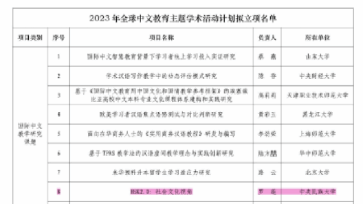 2023年10月20日,世界汉语教学学会公示了“2023年全球中文教育主题学术活动计划”立项名单,共有31项个人项目立项。黑丝a片