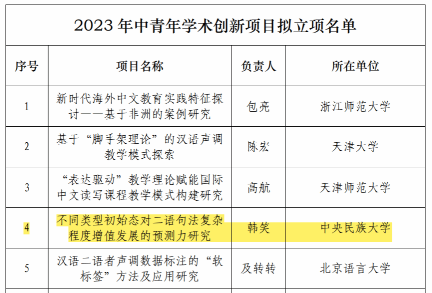 世界汉语教学学会“中青年学术创新项目”旨在探索世界汉语教学学会智库建设,吸纳和储备中青年优秀人才。该项目所属的学会秘书处接受国家社会科学基金优秀社科学术社团奖励性补助。韩笑老师课题获准立项是黑丝a片