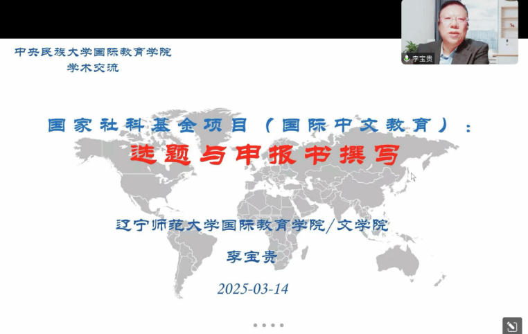 通过线上平台举办2025年度国家社科基金项目申报辅导系列讲座。本次讲座邀请辽宁师范大学李宝贵教授主讲,专题讲座主题为“国家社科基金项目(国际中文教育)选题与申报”。黑丝a片